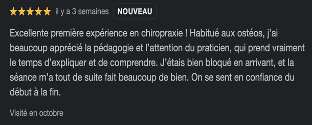 Chaque consultation vise à accélérer votre rétablissement grâce à des techniques manuelles adaptées et des conseils pratiques.
